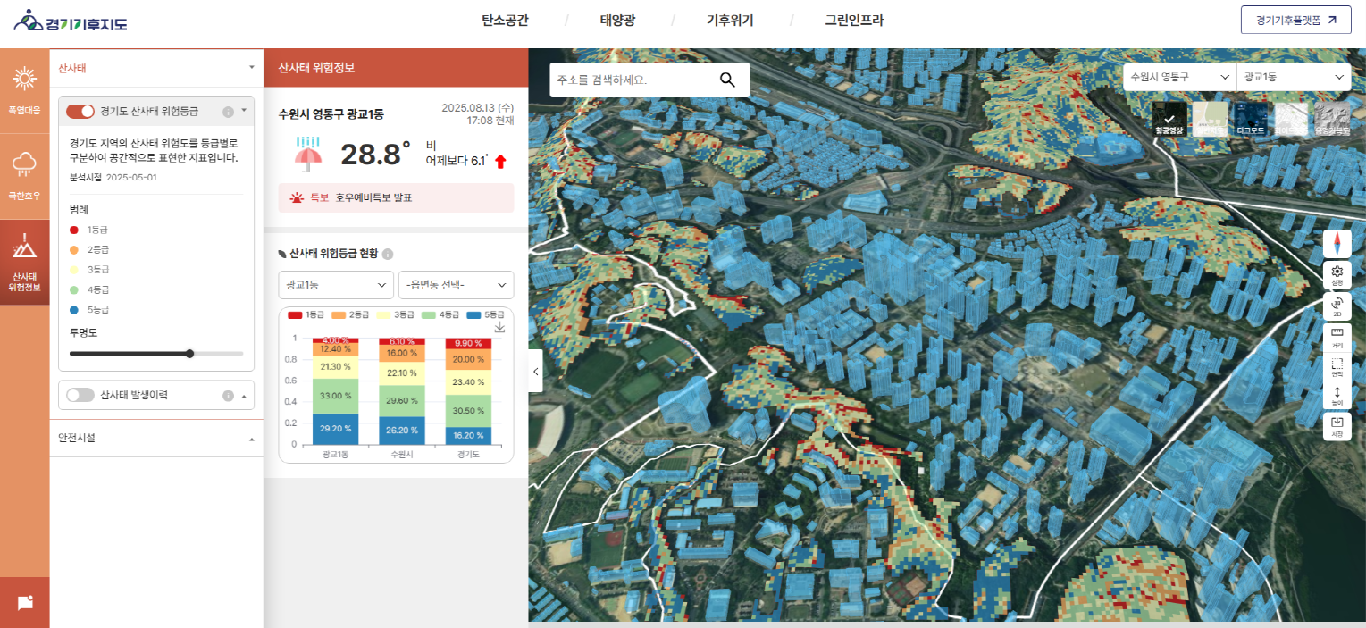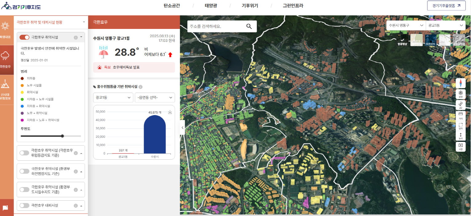 - ‘경기기후지도’에서 폭염·호우 특보 지역,