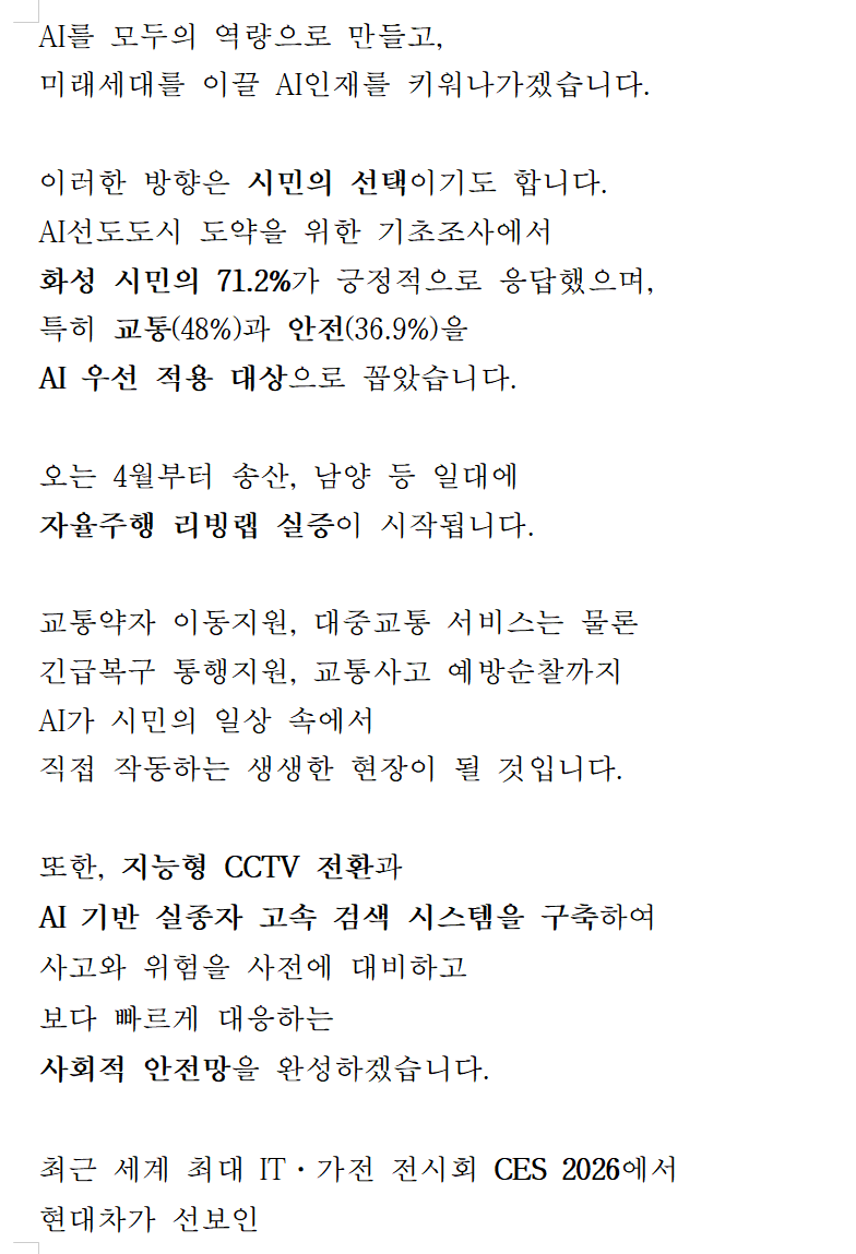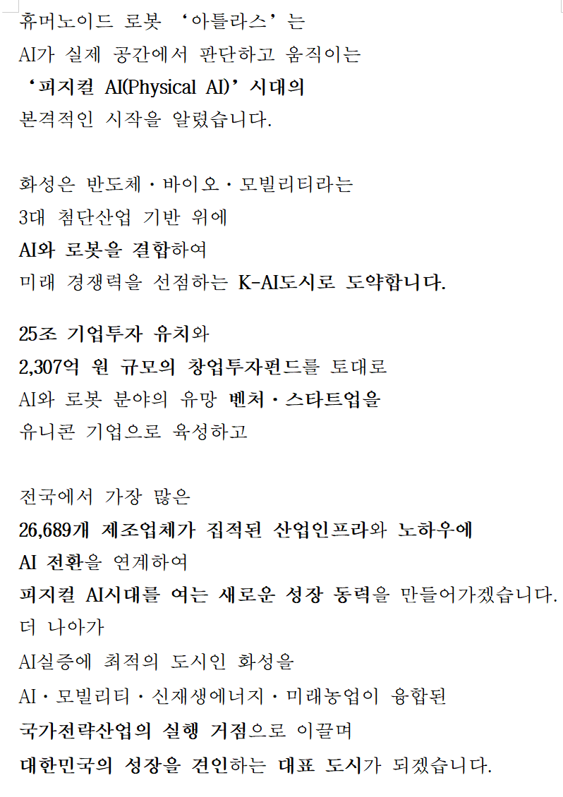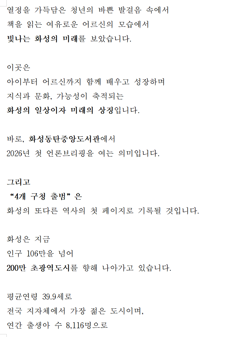 평택시(향남) 소식 2026. 1. 29. 07:54‘특별한 도시, 더 화성답게!’...화성특례시,