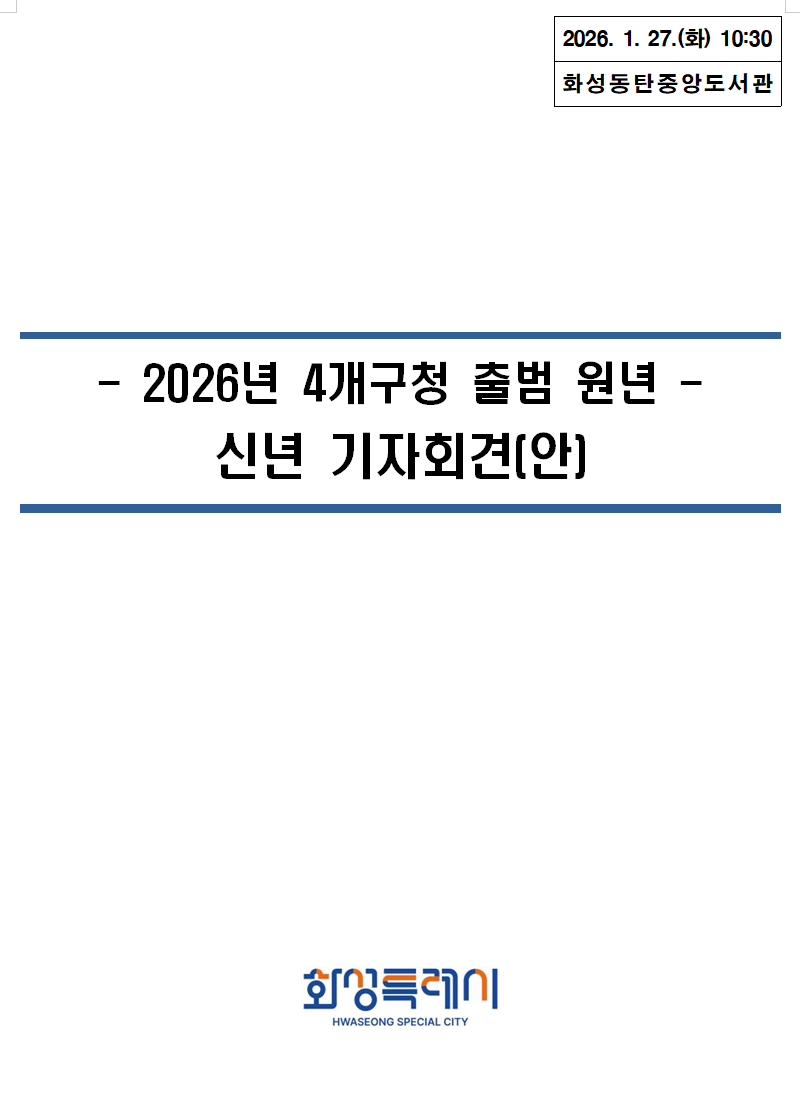 화성시, 2026년 신년 기자회견에서 4개 구청 출범을 시작으로 한 시정 운영 방향과 ‘더 화성답게’ 도약하기 위한 4대 전환 전략을 제시