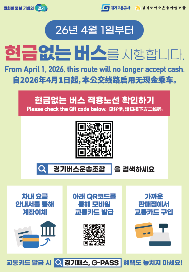 경기도, ‘현금없는 버스’ 4월 1일부터